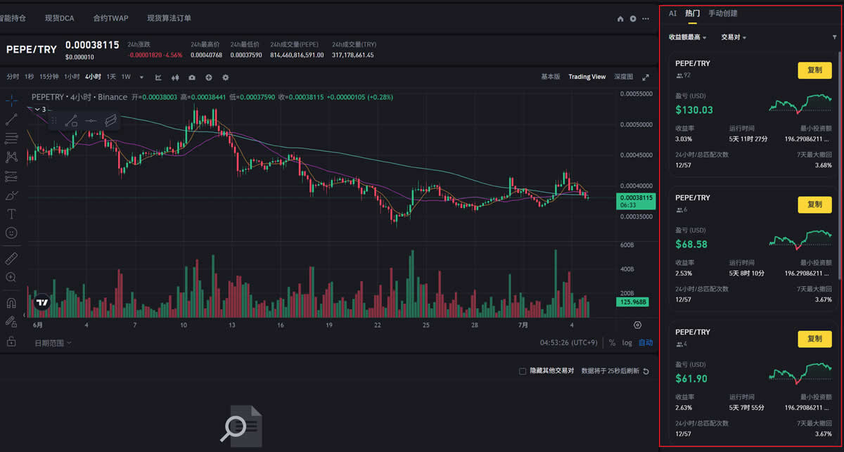 币安机器人就是把这个过程自动化了。你设好价格区间和总金额,它就在这个框框里自己玩,跌了就买,涨了就卖,像个不知疲倦的黄牛党。