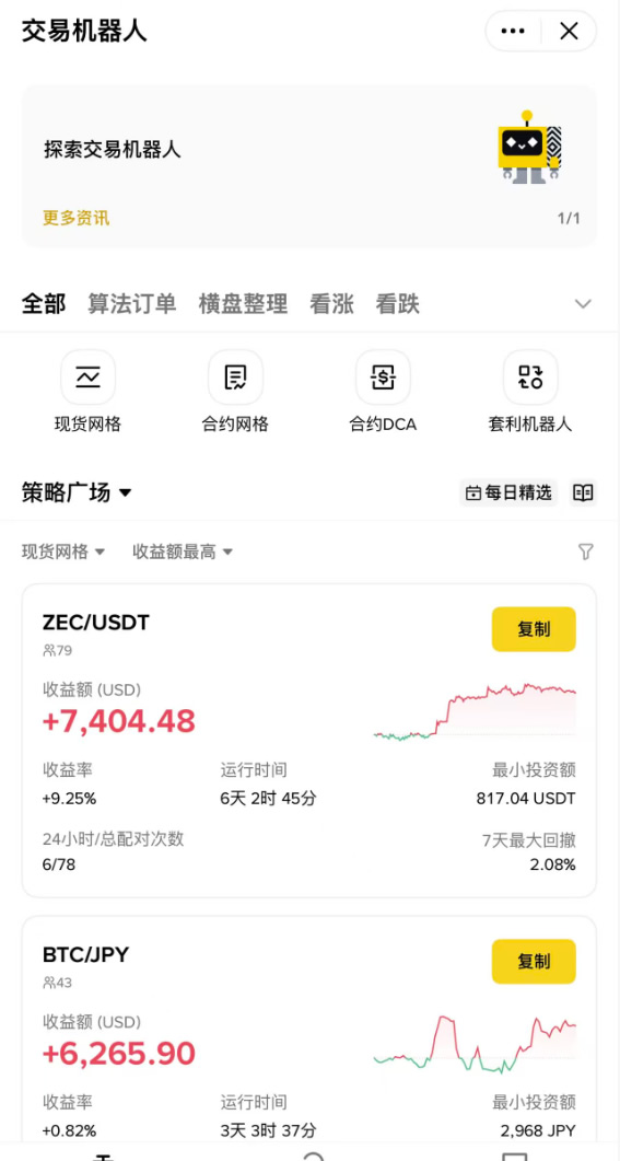 第一步:进入机器人模块,明确策略目标并挑选交易对