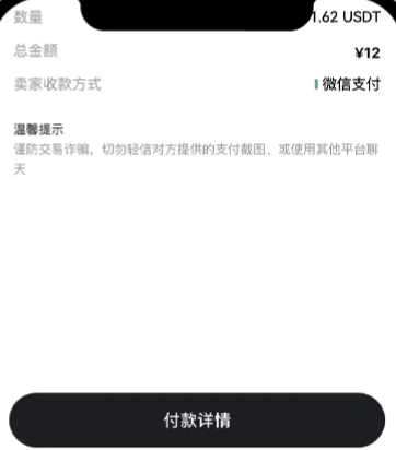 3)根据卖家提供的收款方式(银行卡/微信/支付宝),打开对应的第三方支付平台完成转账。转账完成后请务必回到交易页面点击【我已支付】,卖家才可以给您放币。