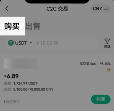 1)打开币交易所app 首页,点击【买币】- 【C2C 买币】。