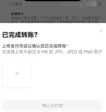 新手用户买币成交<3单时,点击【已支付】后,页面将出现弹窗,需要您上传付款证明。