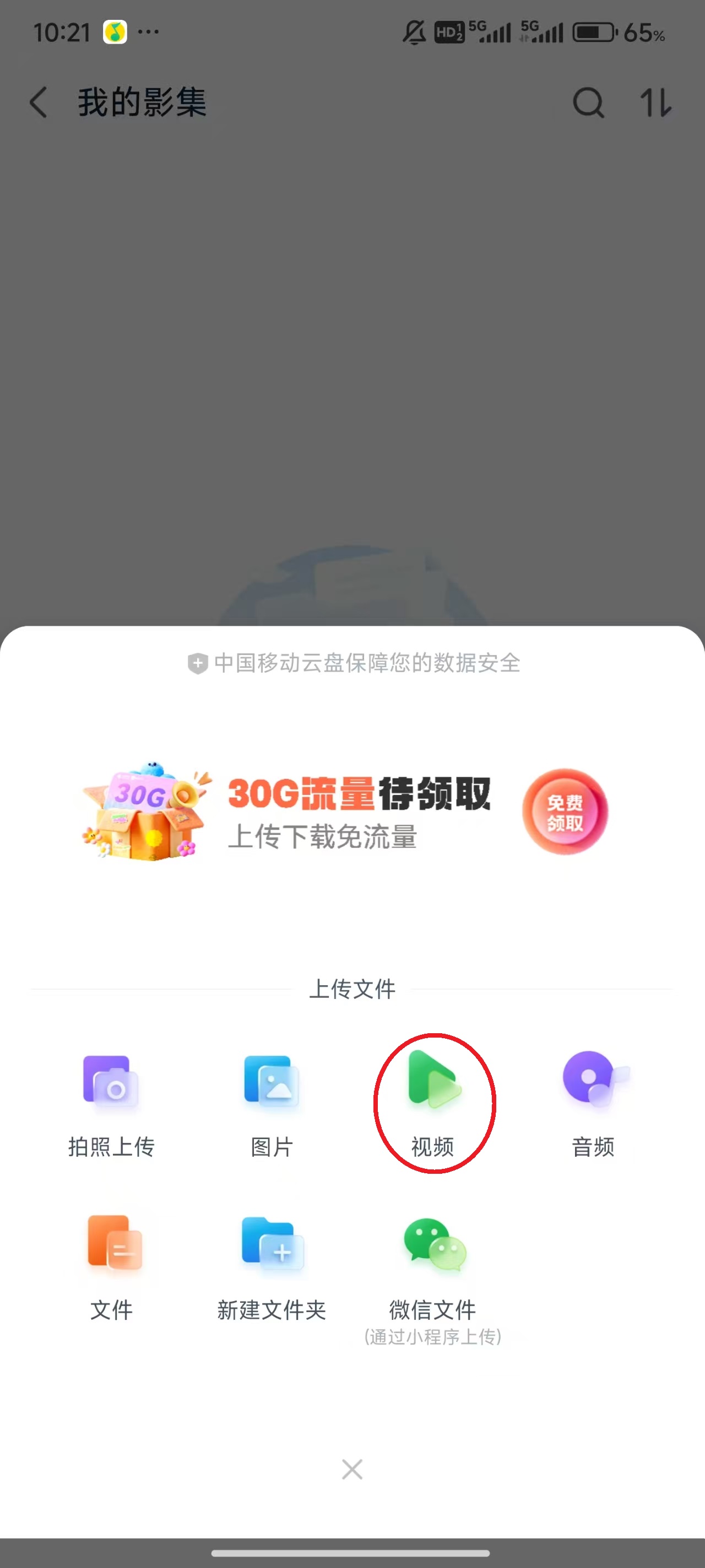点击“我的影集”,选择影集是因为上传影集消耗流量较多,可减少多次重复操作。