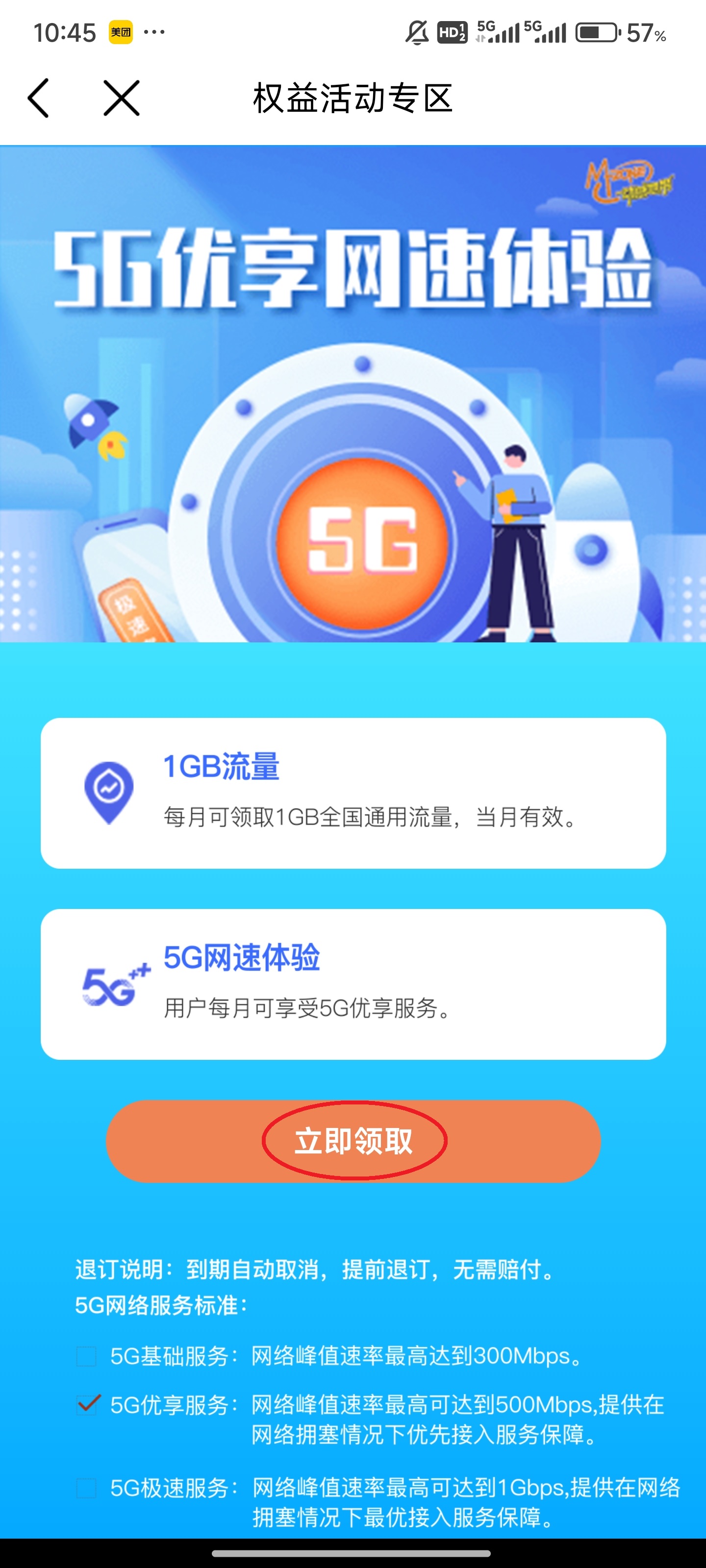 回到第五步,点击“1G流量”,然后点击“立即领取”,就完成了流量领取。