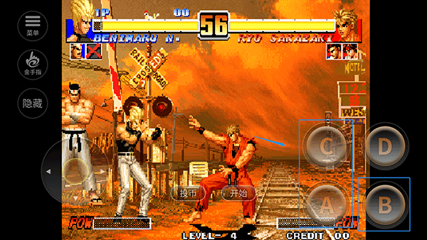 6、在游戏中玩家们需要一次操控三个角色进行格斗,哪方最先将对方的三个英雄击败哪方获得胜利。格斗开始后使用右边ABCD各招式按键与对手进行攻击