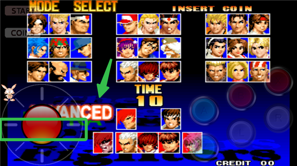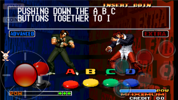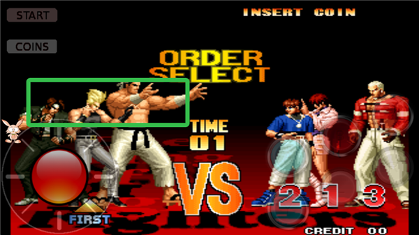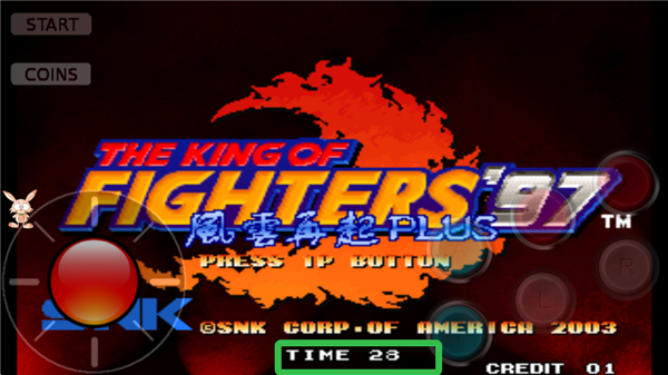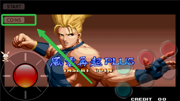 1、打开拳皇97风云再起破解版,按任意键进入游戏后,点击【COINS】投币。