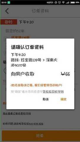 3、抢单成功后,它会让你再次确认定西信息,我们点击确定;