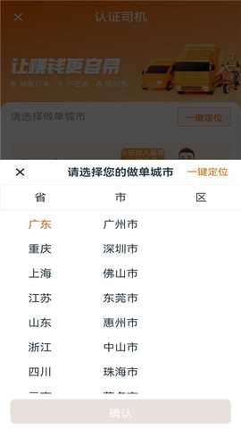 1、打开货拉拉司机版app,登录后进入认证司机界面,选择跑车地点。