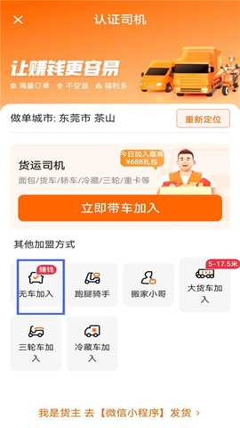 3. 低门槛加入无车司机也可以通过骑手注册参与到平台中,扩大了用户群体,让更多人能够轻松加入赚钱。