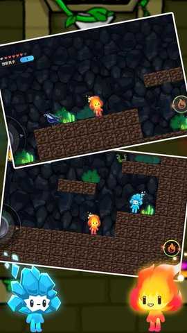 1、此外游戏的卡通风美术画面也是吸引玩家的一大亮点,可爱的冰火人形象让人眼前一亮,让玩家在游戏中享受到视觉的愉悦。
