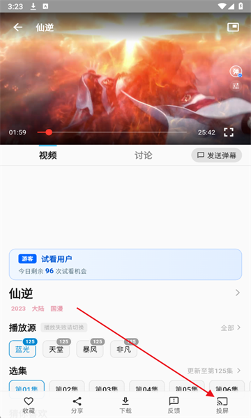 1、进入自己想要动漫播放页面,点击右下角投屏