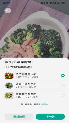 3、点击下一个点击食物详情即可查看当前菜品的热量以及其它营养元素。