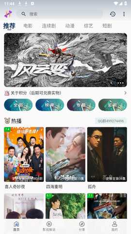 2、进入首页,你可以看到各类影视剧集,包括电视剧、电影和综艺节目。
