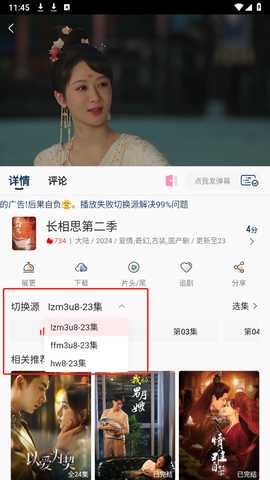 5、如果播放出现卡顿,可以尝试切换播放源。