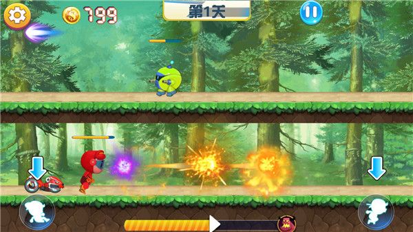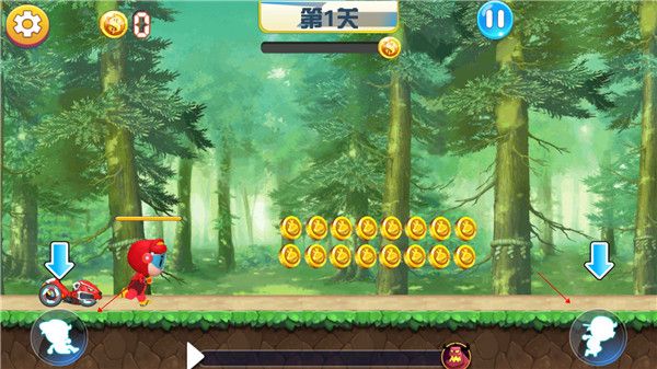 游戏界面左下角和右下角分别对应下滑和跳跃操作,猪猪侠具备二段跳的能力哦。