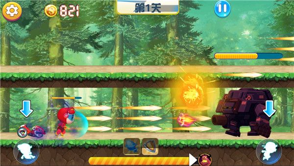加入了机甲元素,通过解锁和购买机甲,增加额外的生命值,提升闯关的成功率。