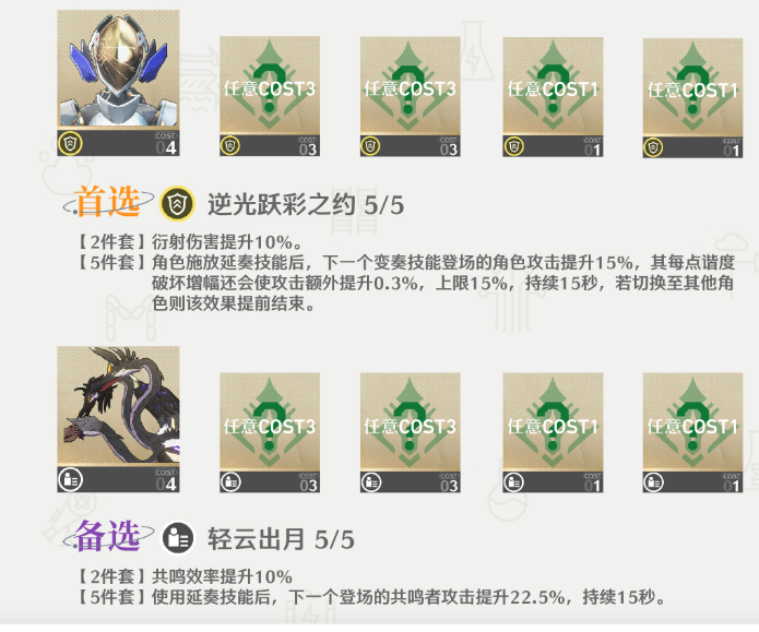 释放大招所有角色的伤害加成提升24%,持续30秒;释放视觉冲击时所有角色谐度破坏增幅提升40点,持续30秒;延奏下一个登场的角色全伤害加深15%,共鸣解放伤害加深25%,持续14秒,若切换至其他角色则该效果提前结束。