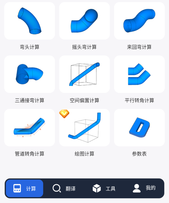 1. 下载并安装管工宝软件,打开后选择需要进行的管道计算类型。