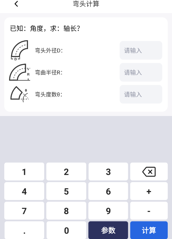 4、在对应输入框中输入你测量的管道数据(也可以直接在参数中直接选择),然后点击计算