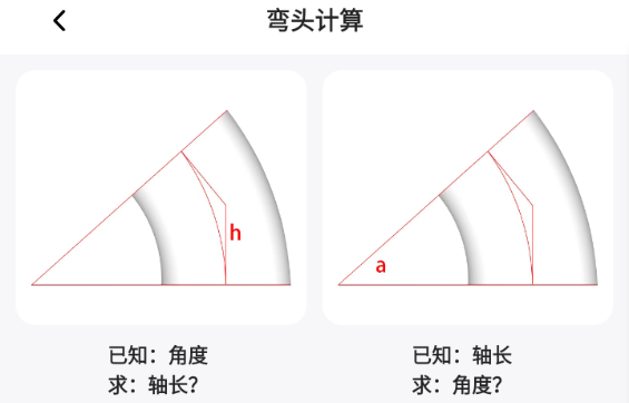 3、以弯头计算为例,因为是要计算管道长度,所以就算则“已知:角度 求:轴长?”