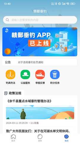 3. 查询水域:进入首页,选择水域查询,输入所在地区,查看附近水域的垂钓信息。