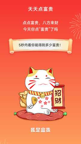 天天点富贵是一款充满乐趣和创意的软件,为用户提供丰富多彩的互动体验。软件主要功能包括:点富贵、富贵签和测运气,在这里通过简单的点击游戏、每日签文和运势测试,享受到轻松愉快的使用体验。