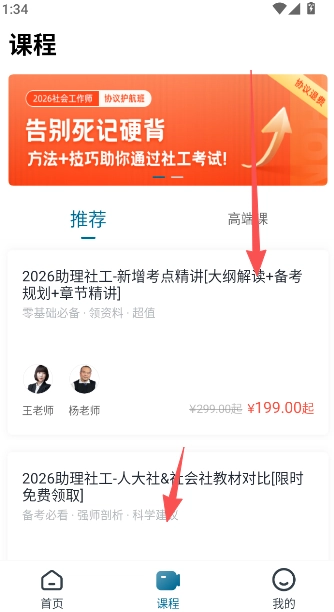 进入首页,根据系统推荐的分类方式选择对应课程,点击即可开始学习。