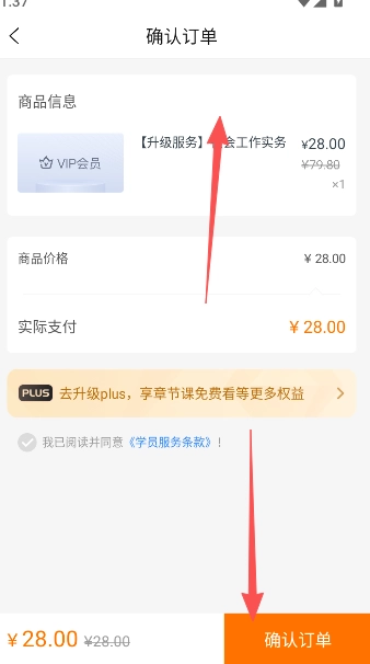 确认会员权益及费用后,选择支付方式完成订单,开通成功后即可享受会员服务。