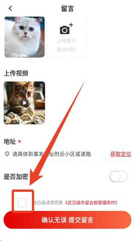 4、内容填写完后,下滑勾选管理条约,点击【提交留言】即可。