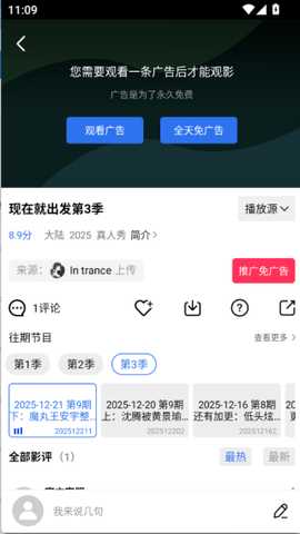 3、点击一个综艺进入查看,就需要用户观看一条广告就能进行观影。