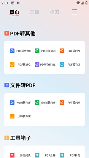 1. 下载并安装免费PDF格式转换APP,打开软件后,您将看到主界面。