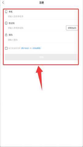 1、启动App后,请仔细阅读隐私协议,勾选同意后点击确认,进入注册界面。