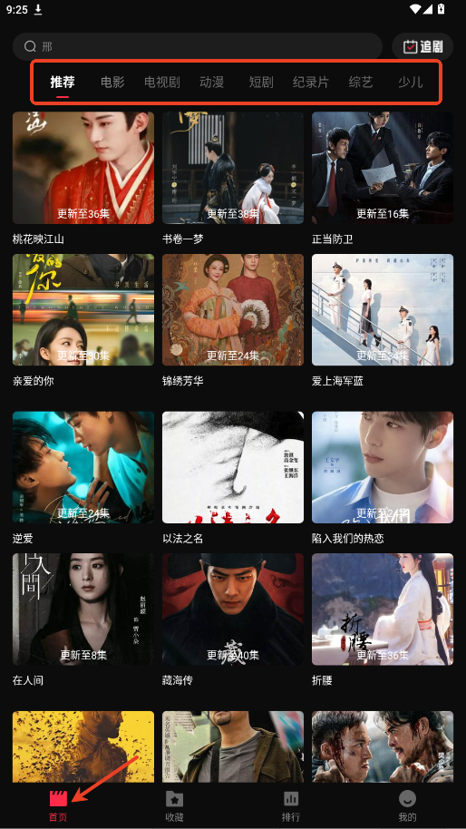 进入主页,通过顶部的分类选项浏览,查找自己喜欢的剧集。