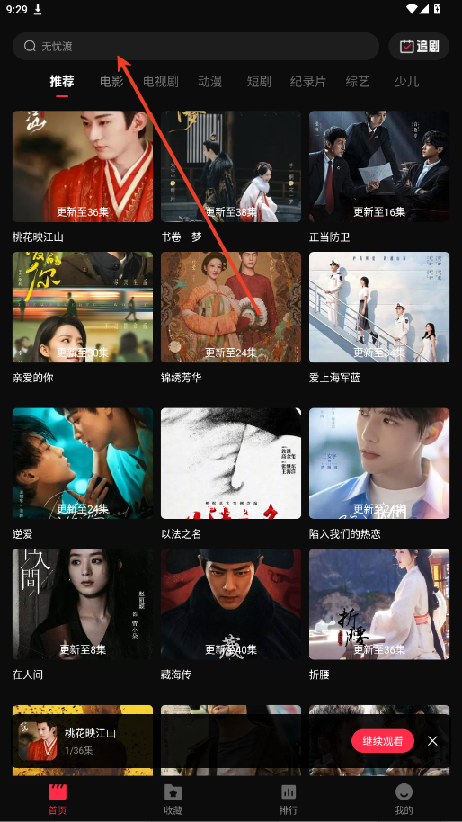 或者,使用顶部的搜索框,输入您想观看的影视剧名称。