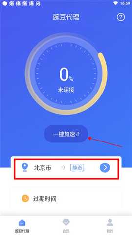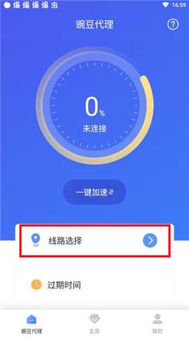 1. 首先打开豌豆代理App,在首页点击【线路选择】。