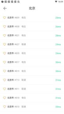 3. 实时监控线路信号状况,查看每个城市的线路信号状态和编号,选择信号较好的IP进行连接。