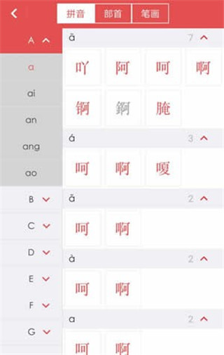 汉字查询功能实现拼音、部首或汉字本身的快速查找,使用方便快捷。