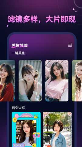 秀影app是一款集多样滤镜与创意相册边框于一体的手机软件,秀影最新版提供了丰富的滤镜选择,一键打造个性化的照片效果。秀影还提供了多种特色边框,让用户的相册更加生动有趣。无论是记录生活中的点滴,还是分享美好的瞬间,秀影都是您不可或缺的创意拍照助手。