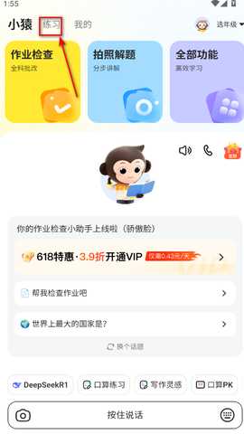 在本站下载安装并打开小猿AI app,在检查首页左上角点击选年级