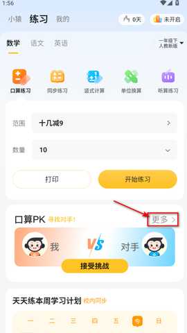 3. 口算练习:提供丰富的口算题目,支持手写作答,题目可随机选择,方便练习。