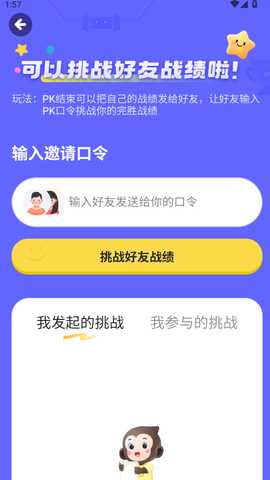 4.输入好友的口令就可以挑战了,也可以我们自己挑战之后给好友,让他来挑战我们的