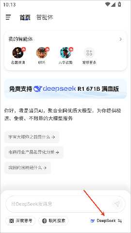 1. 切换大模型:在首页下方灵活切换不同的大模型,以满足多样化的使用场景,提升使用体验。