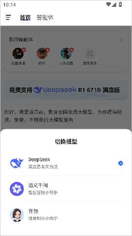 1.用户可以进入app后点击右下角的语言大模型名称,默认为deepseek