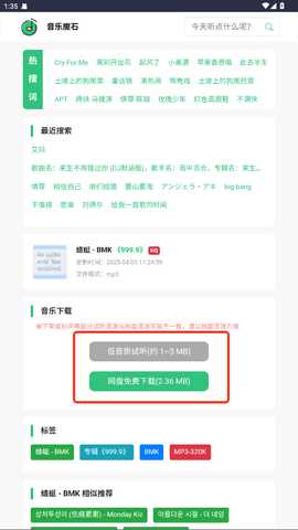 播放与下载:支持在线免费播放音乐,也可选择下载到本地,实现离线收听,让用户随时随地畅享音乐。