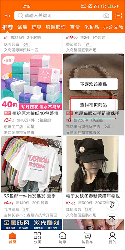 2、点击后系统会自动列出所有相似的商品供你挑选。