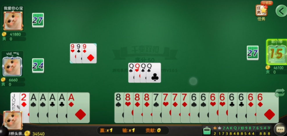 2、丰富的游戏模式:游戏提供了火拼双扣、千变双扣等多种玩法,满足不同的需求,保持游戏的新鲜感。