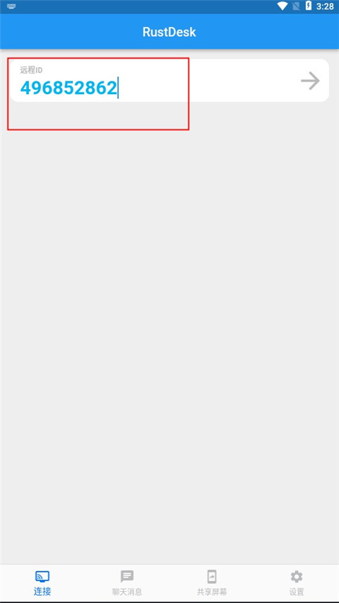2. 输入远程ID:在上方的远程ID栏中输入被访问电脑的唯一ID。