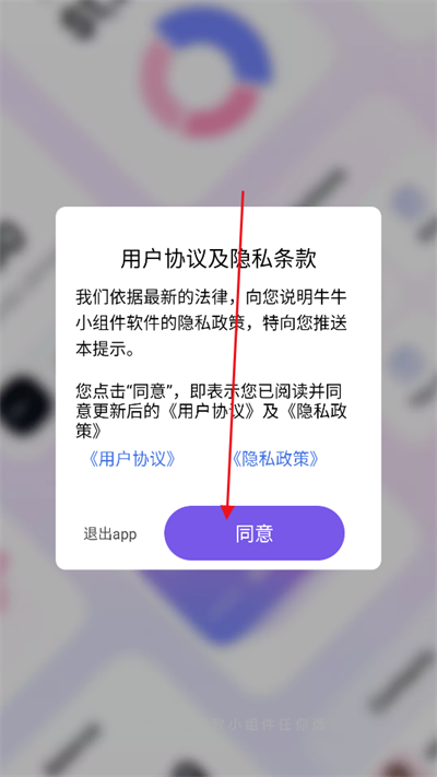 1. 首先下载并安装牛牛小组件,打开软件后同意隐私协议。