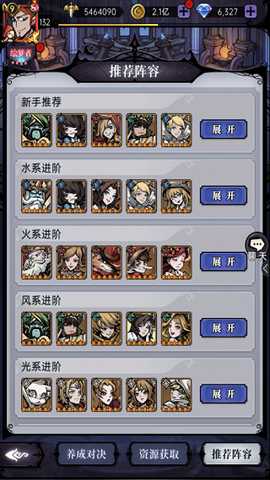 冒险者们在城堡里面召唤伙伴,可以在界面右上角的推荐栏里面查看推荐阵容,根据自身目前拥有的伙伴或想走的阵容路线进行选择。