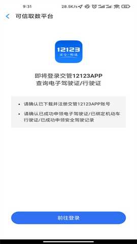 4、比如使用12123认证,回立即登录交管12123APP,并提取信息
