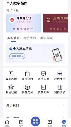 2、进入这里大家不仅能快速登录,还能了解自己的电子卡包,查看办件信息。